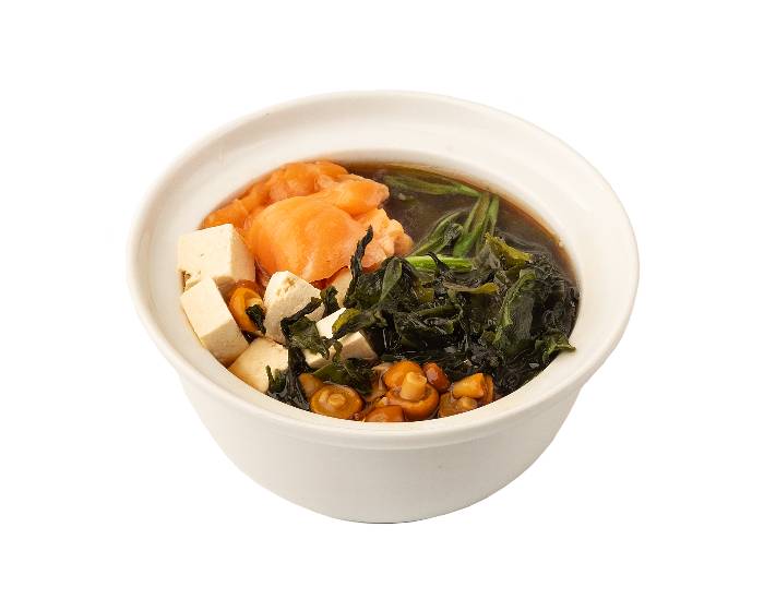 вакамэ, тофу, намеко, нежный лосось, лук зеленый