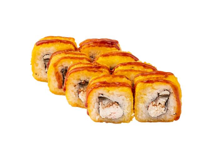 теплый ролл с начинкой из нежного филе угря, снежным крабом под соусом Унаги
